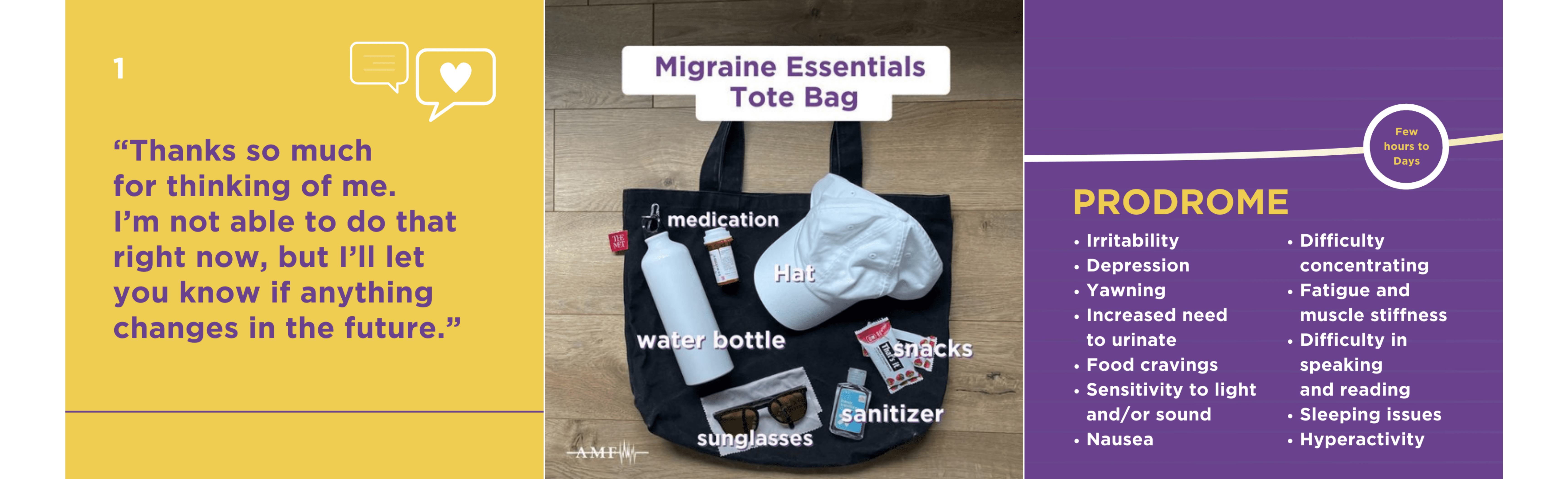 And as always, we couldn’t have done it without the migraine community. From opening up about your migraine journeys to mentioning what you’d like to learn more about, our community members continuously teach us how to improve our resources. The migraine community is the backbone of our foundation and the reason for everything we do.