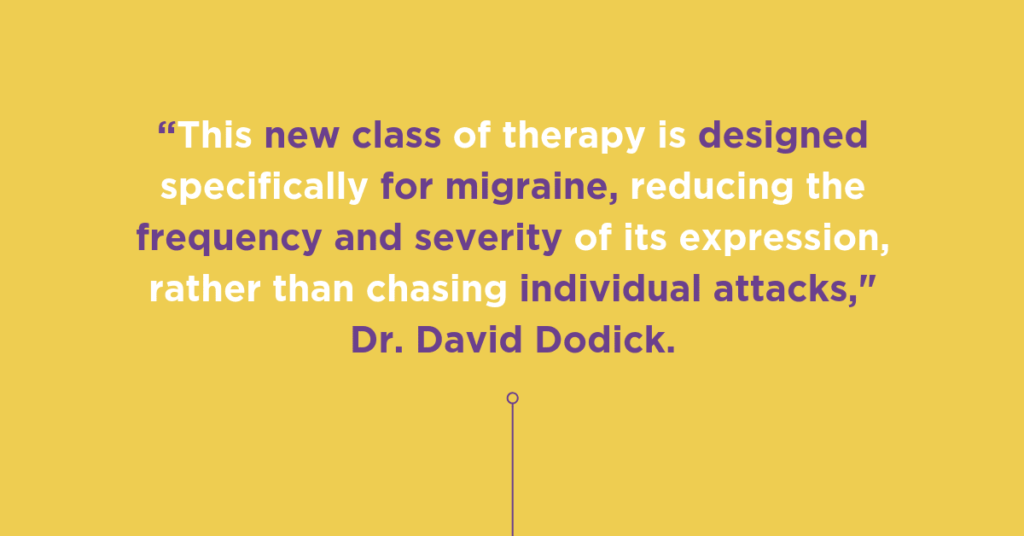 “This is an unprecedented time for people living with Migraine,” says Dr. David Dodick, Chair of the American Migraine Foundation and neurologist at the Mayo Clinic. “This new class of therapy is designed specifically for migraine, reducing the frequency and severity of its expression, rather than chasing individual attacks.”